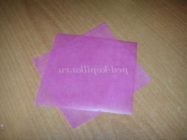 Нарізаємо фетр на квадрати, розміром 10 на 10 сантиметрів, накладаємо один на інший, щоб вийшла восьмикутна зірка