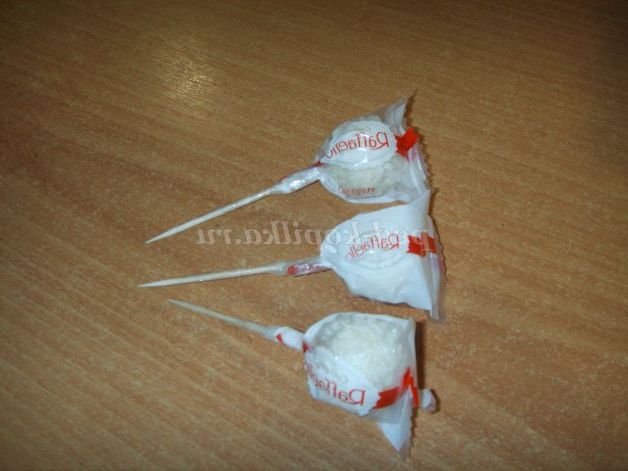 До цукерок прикріплюємо на скотч зубочистки