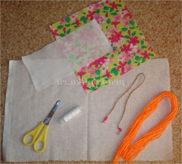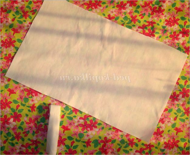 1. Нарізати клаптики: один кольоровий 10х10 см, два з білої тканини 10х20 см і 10х5 см