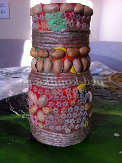 По краю баночки викладаємо рядами фісташкові шкарлупки.