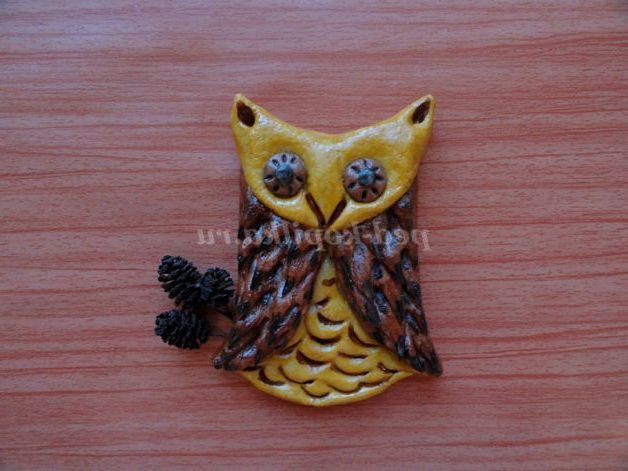 Покриваємо лаком, приклеюємо шишечки. Зі зворотного боку можна приклеїти магніт.