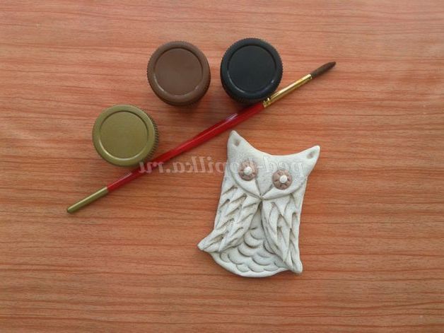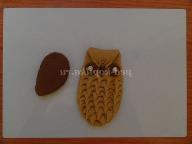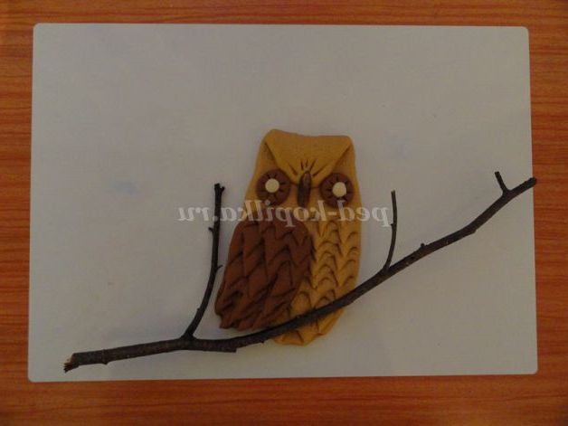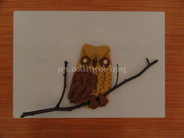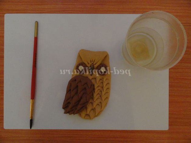 Використовуючи воду, приклеюємо крило на тулубі сови.