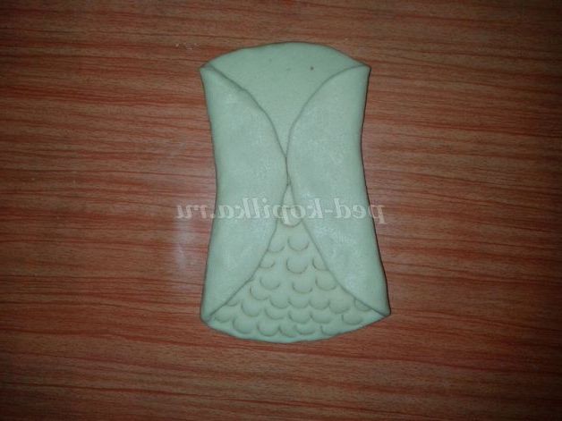 З коричневого тіста робимо крило і також, ножицями, надрізи.