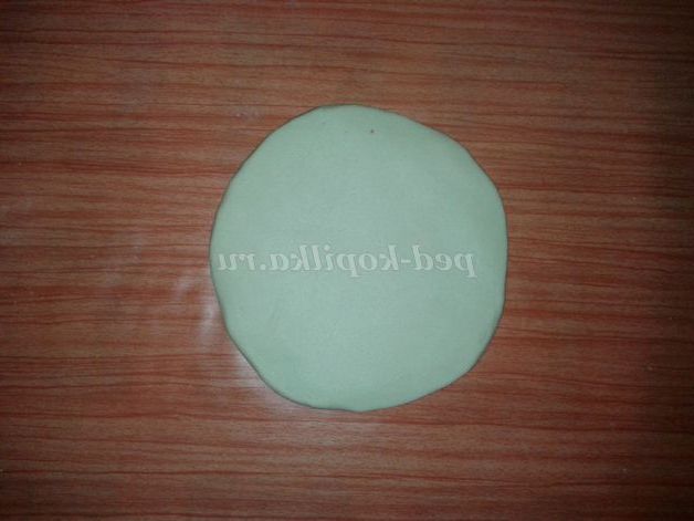 Розкачуємо світло-коричневе тісто і надаємо овальну, витягнуту форму.