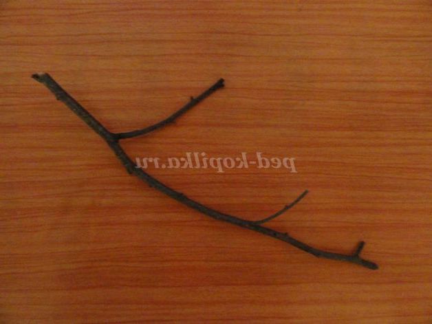 Беремо нашу гілочку, маємо її знизу і трохи вдавлюємо (можна попередньо змастити це місце водою).