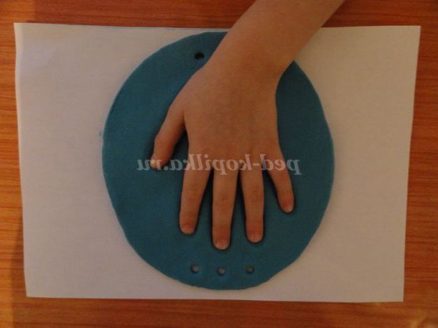 Далі прикладаємо на основу долоньку і злегка вдавлюємо її.