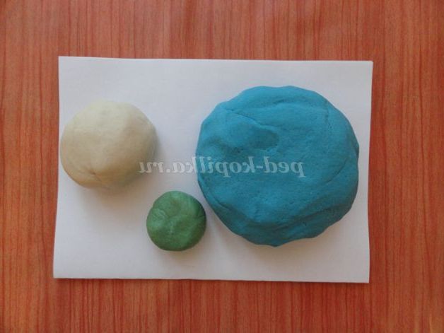 Змішуємо всі складові і вимішуємо тісто. Мені знадобиться безбарвне і тісто блакитного і зеленого кольорів. Для цього потрібно додати гуаш певного кольору і вимісити тісто.