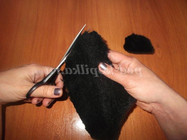 Тепер беремо шматочки хутра і ножицями формуємо гриву і чубчик нашої конячці.