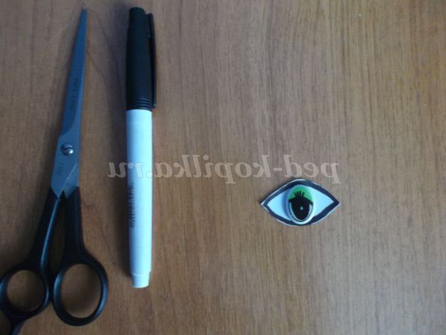 Замість покупних глазиков можна використовувати саморобні, з таблеток або капсул на які нанесений чорним маркером зіницю. Вони теж виглядають дуже оригінально.