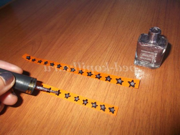 У центр кожної зірочки капаємо трохи лаку для нігтів.
