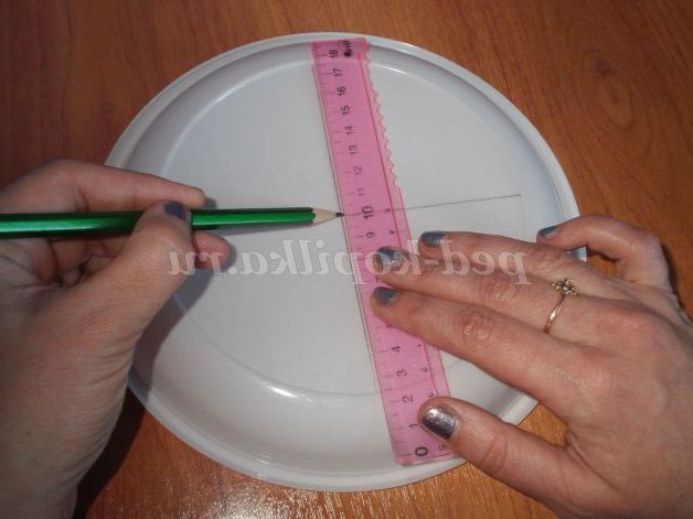 Беремо пластикову тарілку і з допомогою лінійки і простого олівця ділимо її на рівні 4 частини.
