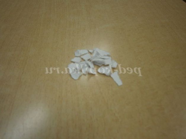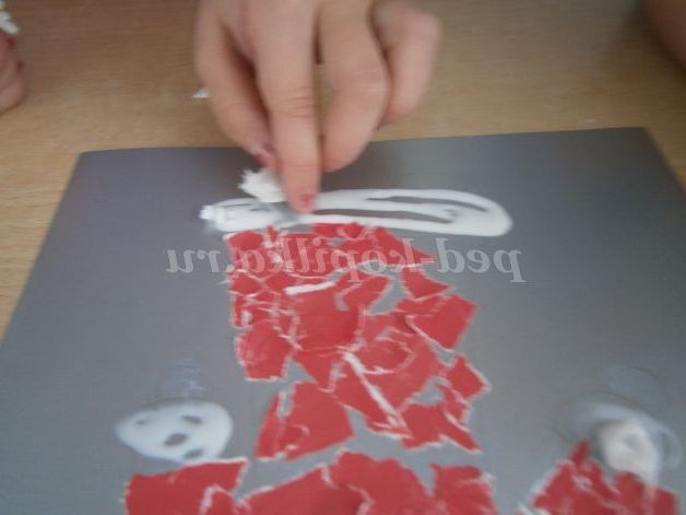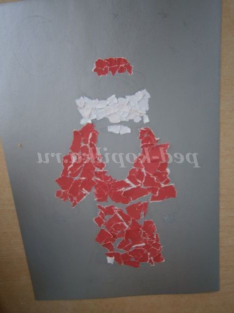 3. Зараз потрібно зробити обличчя Діда Мороза. Для цього рвемо на маленькі шматочки білу папір.