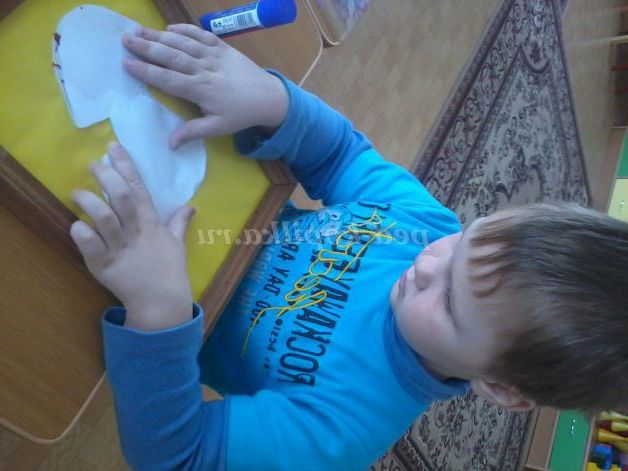 Потім змащуємо ніжки грибів клеєм, і посипаємо білими кульками.