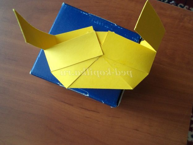 3. Від картону жовтого кольору відрізаємо шматочок розміром 15х18 див.