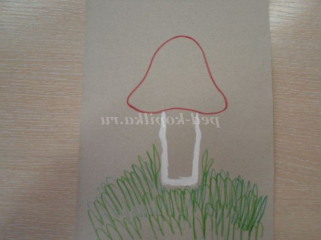 Попередня робота. Бесіда про грибах з демонстрацією картинок, малювання гриба по шаблону, трафарету з подальшим зафарбуванням, збирання мухомора з кольорових площинних, м'яких деталей на липучці, заучування вірша «Мухомор».