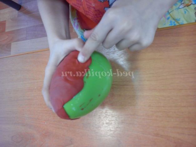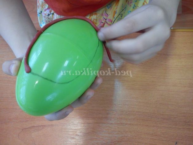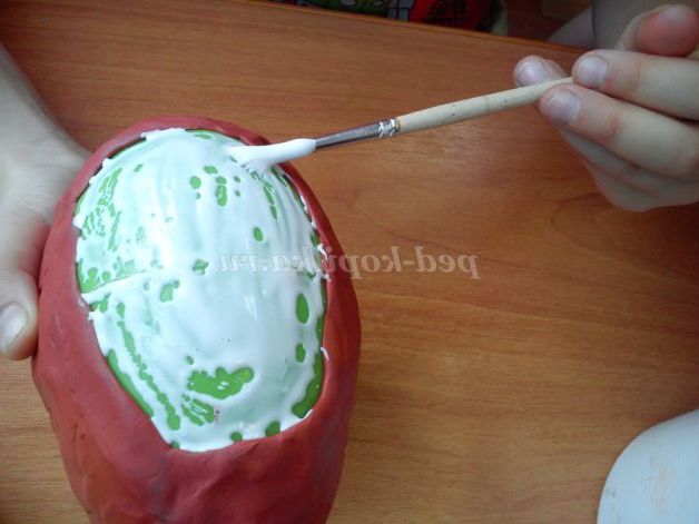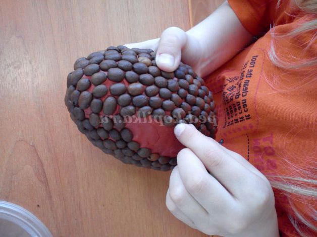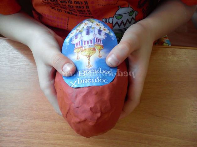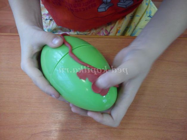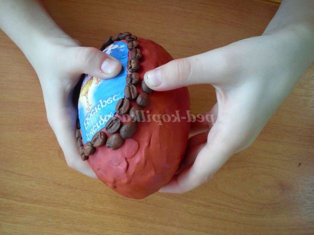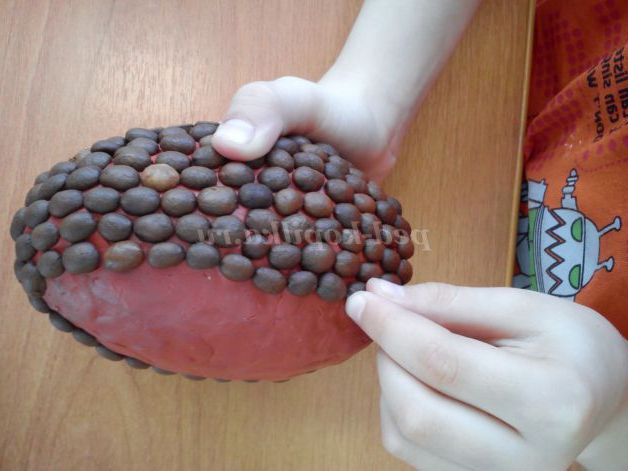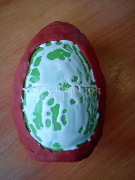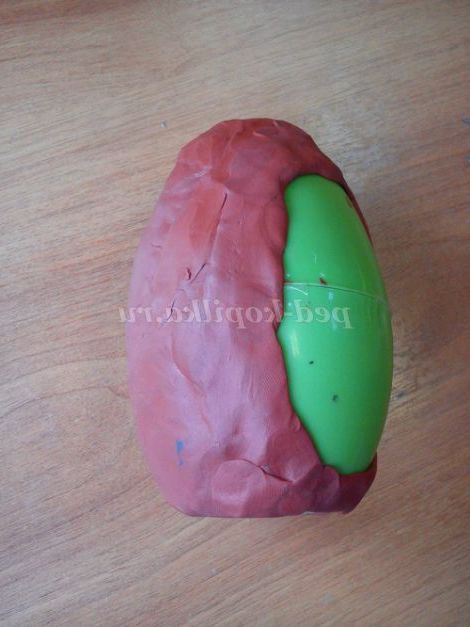 Обмазуємо пластиліном всю поверхню пластмасового яйця (фото 14,15)