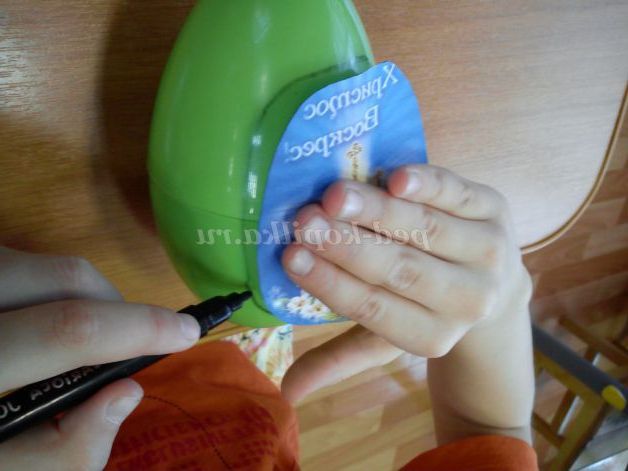 Картинку накладаємо на пластмасове яйце і обводимо по контуру (фото 5,6).
