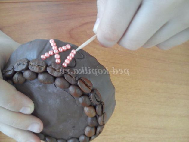 приступаємо до прикраси поверхні підставки зернами кави (фото 53,54,55,56)