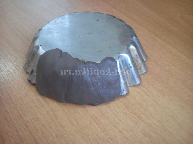 Пластиліном обмазуємо поверхню тарілочки (фото 42,44,45)