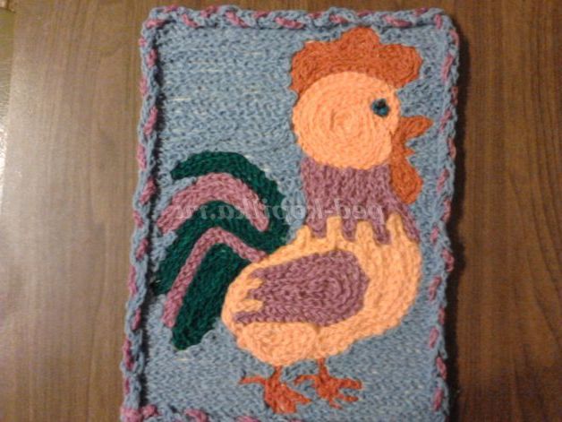 вироби з ниток, півник своїми руками, клейовий гобелен, аплікація з плетених шнурів, аплікація з в'язаних ланцюжків