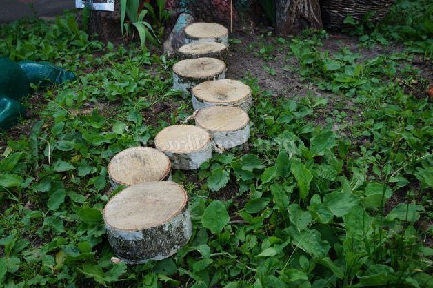 2. З пнів була складена, оптимальна на мій погляд, композиція. Для безпеки дитячих прогулянок пні були вкопані в землю і скріплені між собою цвяхами.