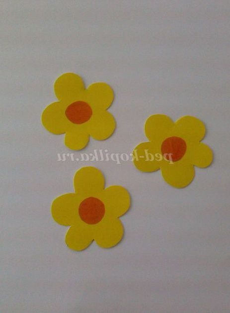Шаблон квітки обводимо на жовтому картоні і вирізаємо.