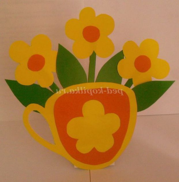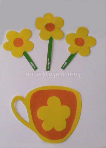 Склеюємо стеблинки з квіточками і наклеюємо на чашку.