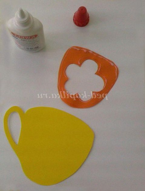 Шаблон чашки обводимо простим олівцем на жовтому картоні і вирізаємо.