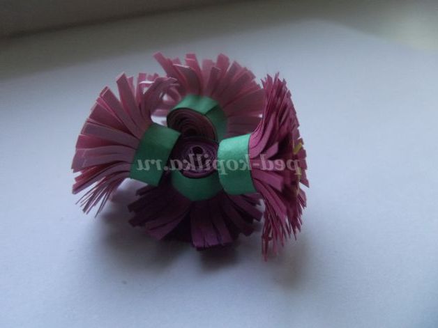 1. Спочатку будемо робити квіти. Смужку рожевого кольору, часто надрізати на 2/3 ширини.