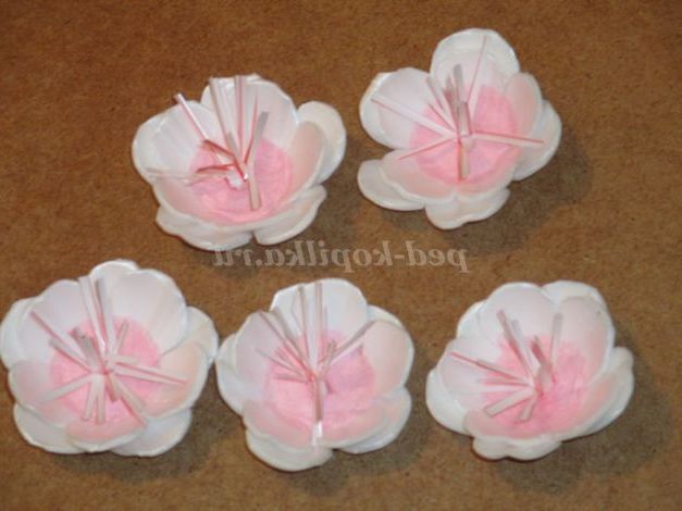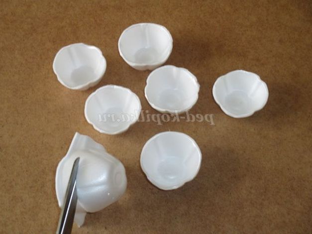 6. Краю чашки розрізаємо на 5 частин - це майбутні пелюстки квітки яблуні.