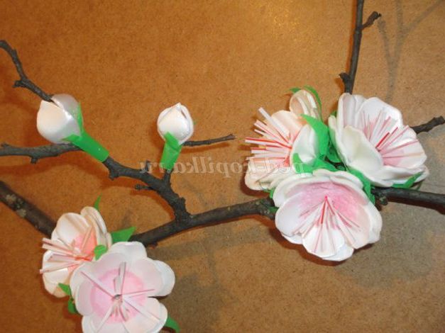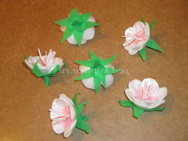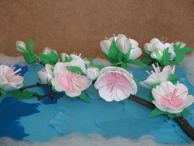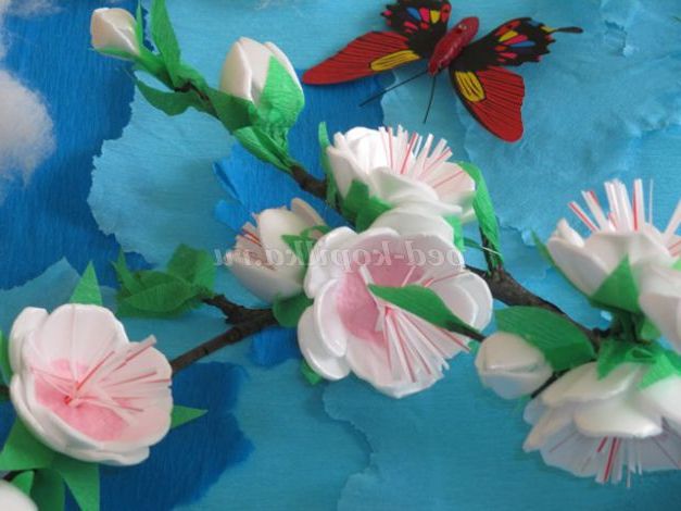 Дошкільникам необхідно спростити роботу і зробити квітки яблуні з однієї чашки, можна не робити дрібні пуп'янки. Все залежить від ваших здібностей дітей.