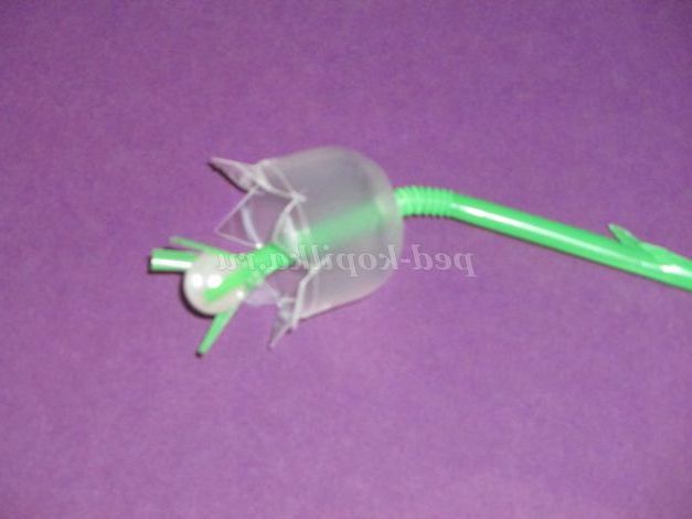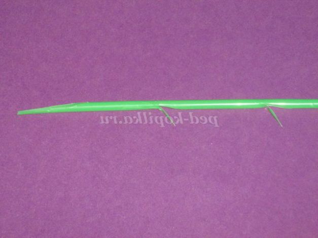 10. Вставляємо зрізану навскоси частина стеблинки в невеликий надріз на інший трубочці до упору (тримається міцно і не вилітає).