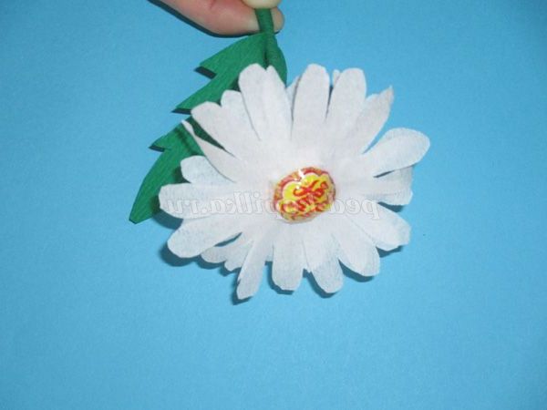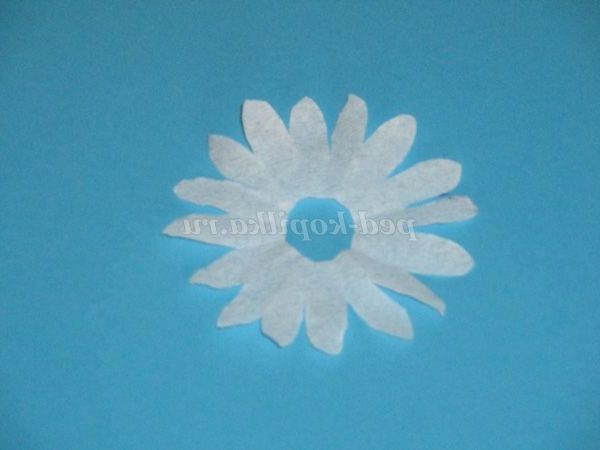 17.Чтобы ромашка виглядала пухнасті, наклеюємо зверху ще таку ж ромашку. Ось як виходить.