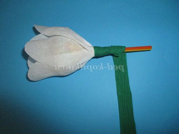 18.Обклеиваем стебло знайомим способом і приклеюємо листочок.