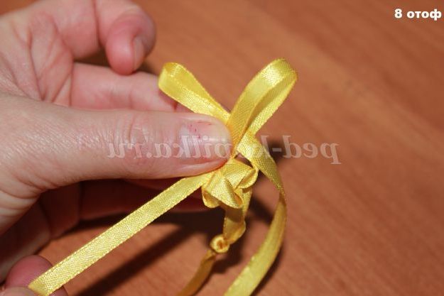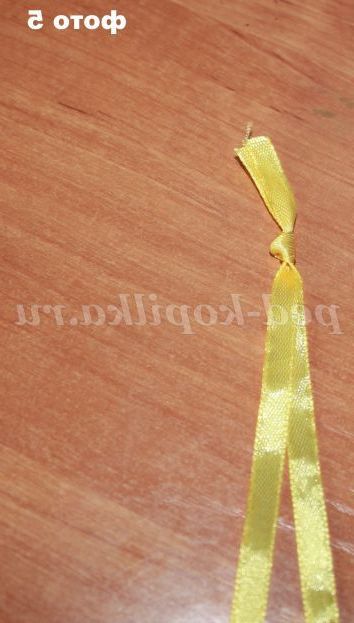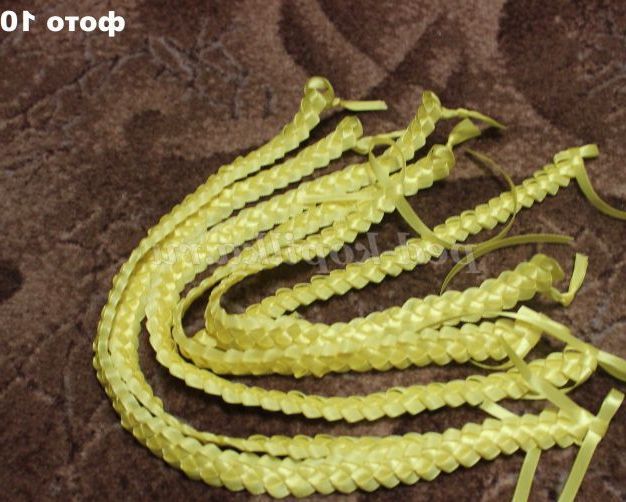 Беремо 2 стрічки шириною 0,6 см завдовжки 1 метр пов'язуємо їх вузликом