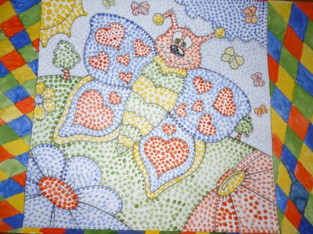 Вихователь: Так, ви праві! Ми можемо повернути їм їх красиві сукні з допомогою фарб. А давайте, зробимо їх платтячка ще гарнішим і нарядно ніж вони були? І допоможе нам у цьому нова, незвичайна техніка малювання, яка називається Пуантилізм. Це особлива техніка малювання крапками (або мазками) різного кольору, її придумали неоимпрессионисты в кінці XIX століття. Точки можна ставити близько один до одного, або, навпаки, залишати більше вільного місця. Для цього нам знадобляться яскраві фарби і «чарівні палички» (ватні палички). Ми будемо вмочати кінчик палички у фарбі, а потім акуратно наносити точки на крильця метеликів. Щоб потренуватися, у вас на столах є чисті аркуші паперу, на яких ви можете спробувати намалювати візерунок, а потім перенести цей візерунок на сукні метеликів. Але спочатку, давайте підготуємо наші ручки і пальчики до творчості: