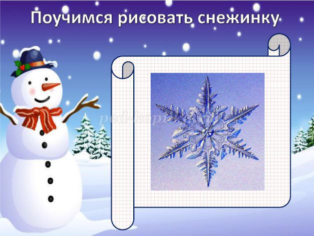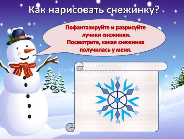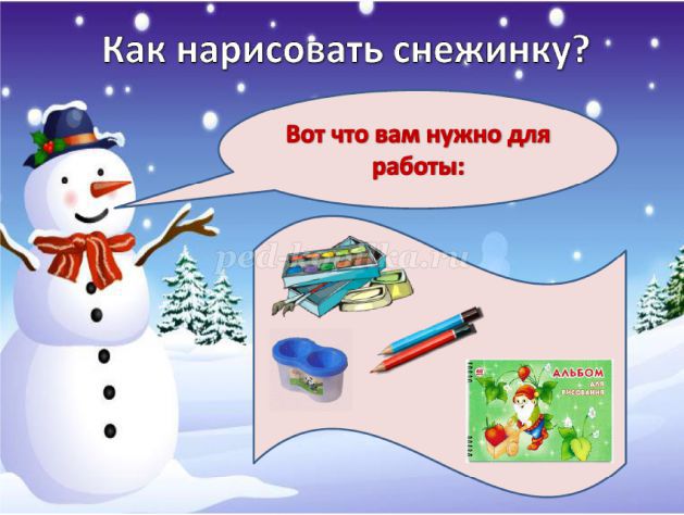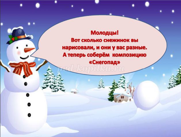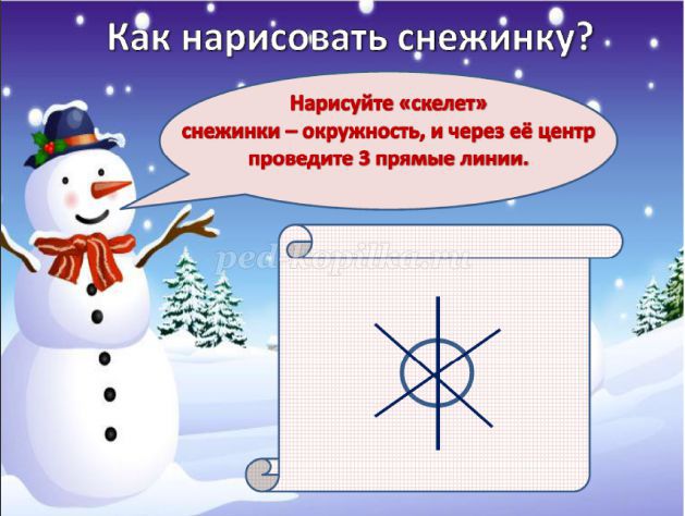 Мета: познайомити учнів зі способом малювання сніжинок для створення творчої композиції «Снігопад».