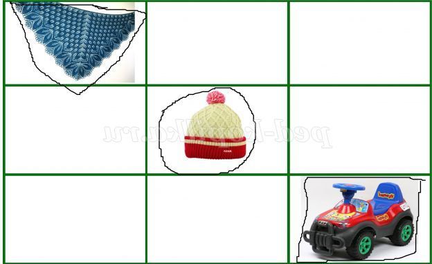Логопед: Обведи цей предмет в трикутник. Від клітки з шаллю опустися на дві клітинки вниз, на дві клітини ліворуч. Який предмет зображено?