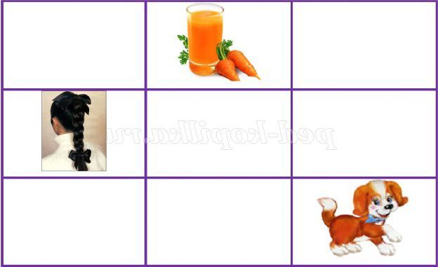 Обладнання: розрізні предметні картинки зі звуками [р], [л],[з],[ш], картки з 9 клітинами, з зображенням трьох предметів на різному рівні.