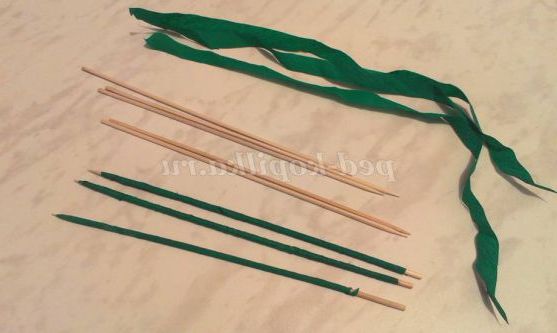 Шпажки обмотуємо смужками крепованого паперу зеленого кольору, фіксуючи їх у кількох місцях клеєм.