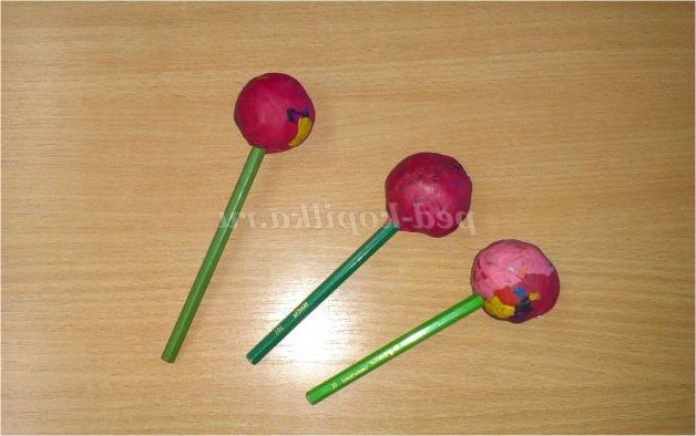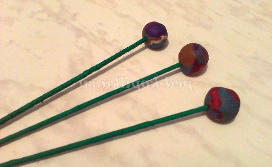 Аналогічним способом можна виготовити квіти лише замінивши олівець для кріплення пластиліну на дерев'яну шпажку.