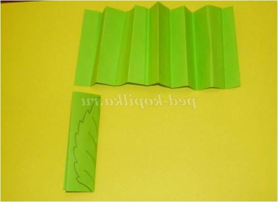 Для виготовлення листків - смужку паперу скласти гармошкою, намалювати контур полулиста і вирізати.