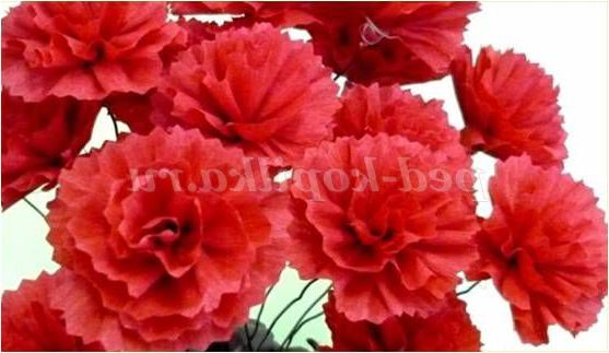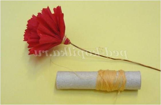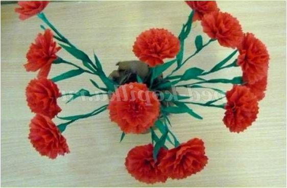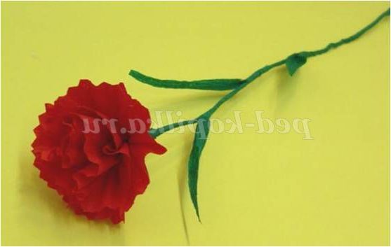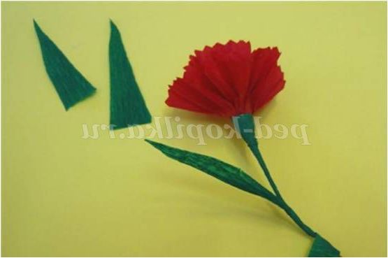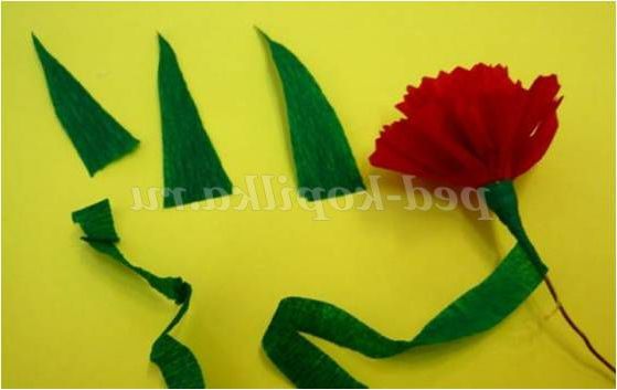 Наближається чудове свято - свято всіх чоловіків - 23 лютого. І звичайно ж, усі ми, вихователі думаємо над тим, що ж таке виготовити з дошкільниками в подарунок самим близьким і рідним: татам, дідусям, братам. Чомусь ми звикли думати, що квіти або вироби з квітами прийнято дарувати тільки мамам, бабусям, сестрам, але адже і кожному татові (дідуся, брата) теж було б приємно отримати в подарунок квітку, особливо якщо він зроблений люблячими дитячими руками. Пропоную Вашій увазі майстер-клас з виготовлення гвоздик з крепованого паперу.