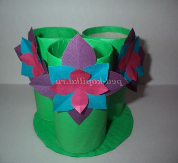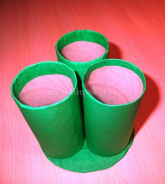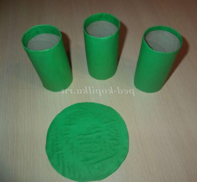 2. Беремо кольоровий папір зеленого кольору і обклеюємо їй все робили поробки.