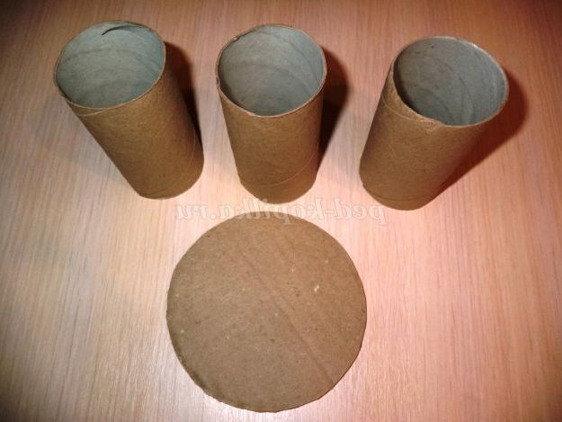 1. Два листа простого картону розрізати на половинки. Вийде чотири аркуші картону (довжина - 17 см, ширина - 8 см). З трьох частин згорнути циліндри (можна взяти від паперу), з четвертої частини вирізати коло діаметром 11 див.
