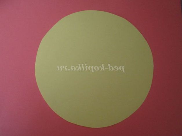Інструменти і матеріали: ножиці, клей ПВА, смужки паперу для квілінгу шириною 7 мм (червоні, оранжеві, зелені), помаранчеві смужки шириною 1,5-2 см, лист картону жовтого кольору.