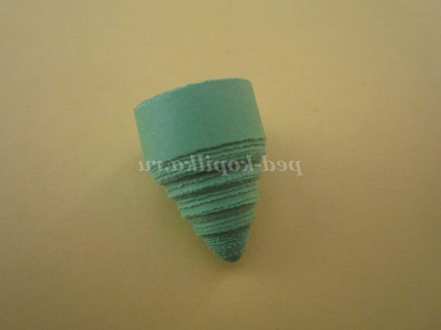 8. З 4 зелених смужок скрутіть щільну спіраль, надайте форму конуса і проклейте. Вклейте в конус пелюстки і серединку.