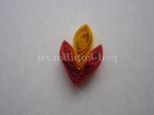 9. Склейте кінці червоних елементів куточком, а потім вклейте жовтий елемент посередині.
