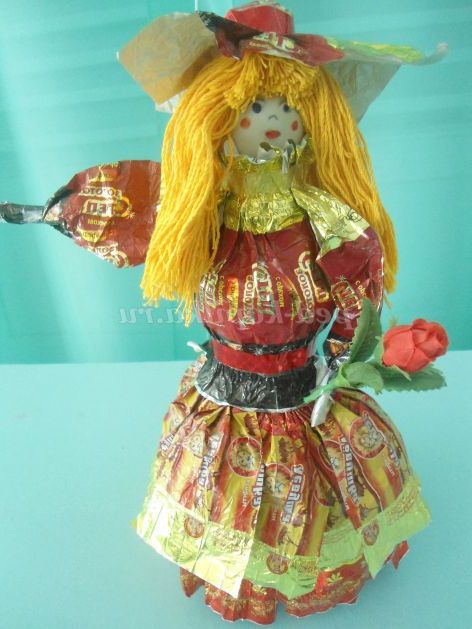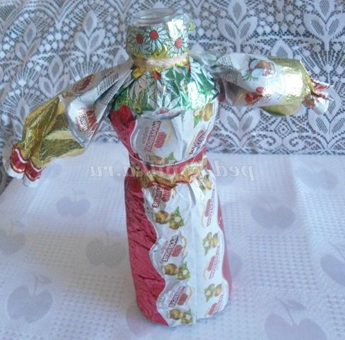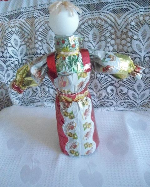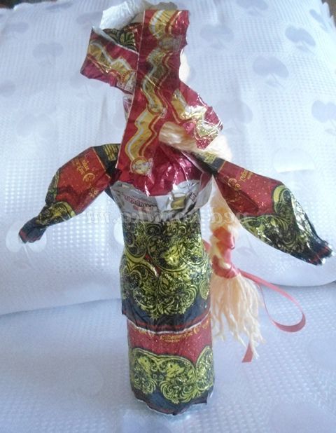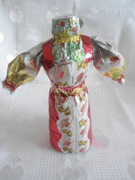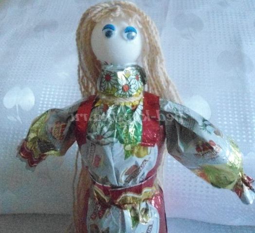 А ми з фантиків ми робимо різні вироби. Пропоную вашій увазі майстер - клас з виготовлення вбрання для ляльок з фантиків. Цих ляльок можна використовувати для настільного театру, для оформлення фольклорного куточка, куточка Росії в групі, для подарунка.