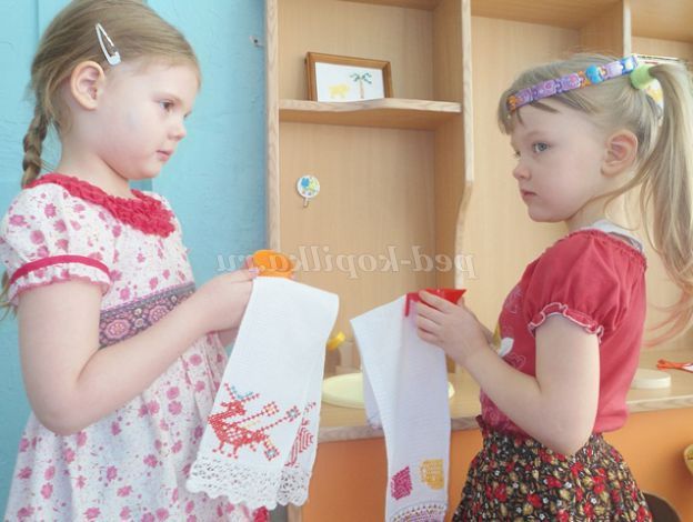 18.Вышитые скатертини, рушники, серветки ми використовуємо для сюжетно-рольових ігор в «Будинок», «День народження». (фото 18, 18а, 18б,18в)